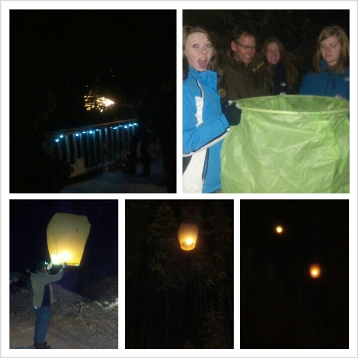 We spent New Year's Eve with our mountain friends. It started with a progressive dinner and then we opened 2013 with Chinese floating lanterns and fireworks.